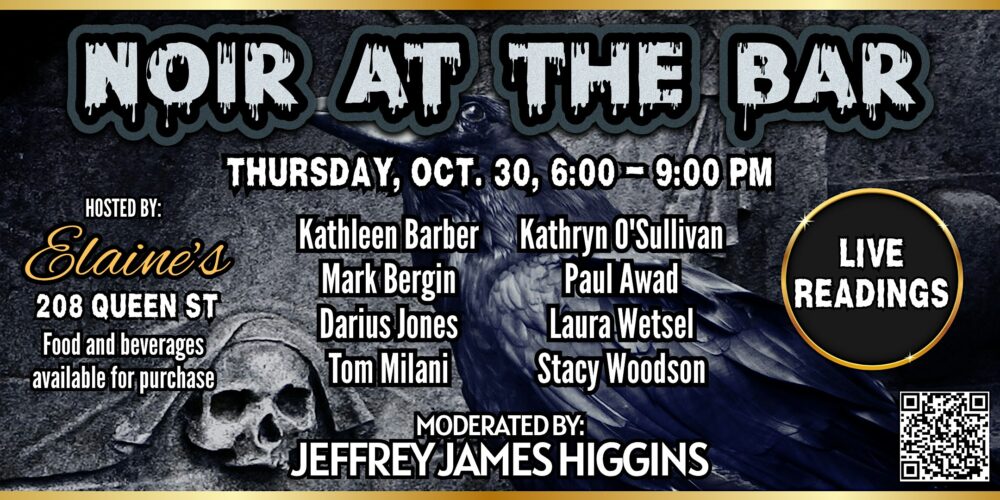 About fills with writers and readers who love a great noir story, says the evening’s moderator, bestselling thriller novelist Jeffrey James Higgins, co-owner of Elaine’s. “Reading from their books on All Hallows’ Eve, also known as Halloween, there’s not better way to prepare for All Saints’ Day (All Hallows’ Day). Join in as the authors share tales from their books that are sure to make you fear things that go bump on the night.”